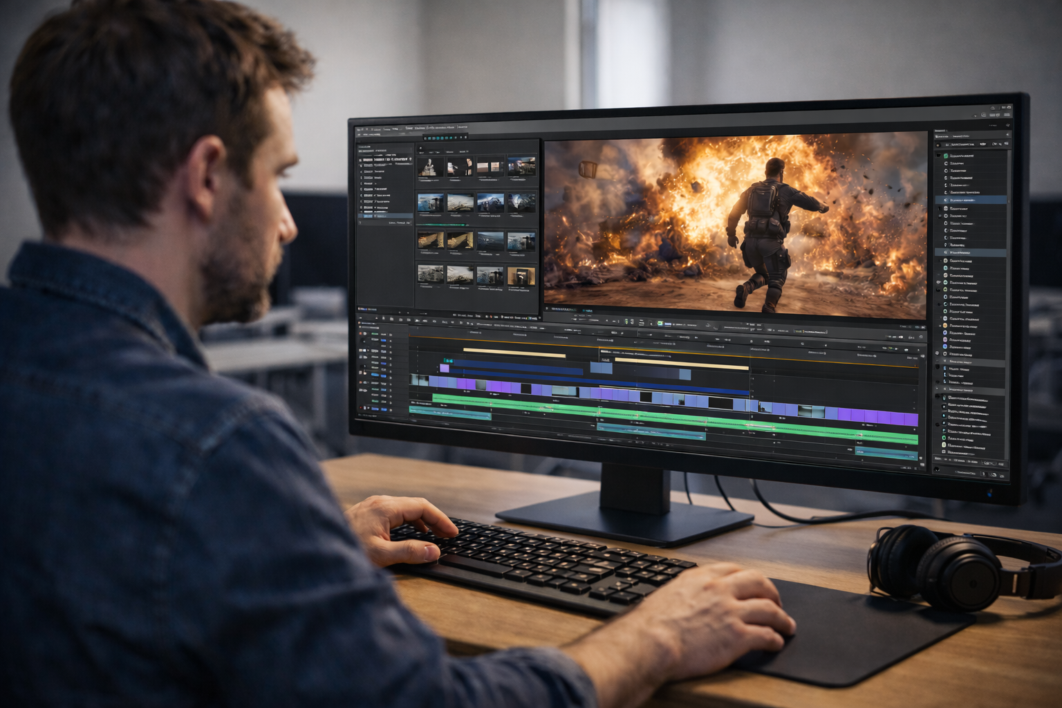 Learn professional editing workflows for film, YouTube, and digital platforms using industry-standard software.